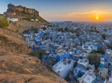 Desayuno en el hotel. Salida hacia Jodhpur, la célebre Ciudad Azul. Visitamos el Fuerte Meherangarh, con su muralla de 36 metros de alto y colecciones de objetos de la nobleza rajastaní, y el Mausoleo Jaswant Thada, en mármol blanco, levantado en memoria de uno de los maharajás más importantes.