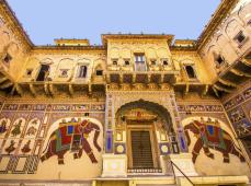 Desayuno en el hotel. Salida por carretera en dirección a Mandawa, situada a 266 km al oeste de Delhi. Durante el trayecto nos adentramos en el Rajastán, el mayor estado del país que significa "Tierra de Reyes", y observamos la vida rural de los pintorescos pueblos que vamos atravesando. En el siglo XVIII, la ciudad comenzó a ser habitada por las familias de comerciantes ricos que construyeron los famosos havelis, mansiones de gran lujo que hoy constituyen verdaderas joyas arquitectónicas. Llegada y traslado al hotel. Por la tarde, paseo por las calles de la ciudad para descubrir su historia y contemplar havelis como Chokhani, Ladia, Shekhawati, Hanuman Prasad Goenka o Murmuria. Observamos sus hermosos patios, balcones y frescos que representan desde mitología y leyendas locales hasta trenes, globos o teléfonos fruto de la influencia británica del XIX. Vemos también los exteriores del fuerte de Mandawa, hoy convertido en hotel, con un arco decorado con escenas de Krishna. Alojamiento en Mandawa.