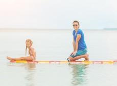 Hoy nos espera una aventura en equipo: nuestras mini Big-Sup. Estas tablas grandes permitirán que los niños y sus padres se diviertan flotando y balanceándose juntos sobre el agua en una zona segura. Después del almuerzo, tendremos tarde libre para dar un paseo o hacer algunas compras. Por la noche, celebraremos la gran fiesta de despedida con juegos para todos.