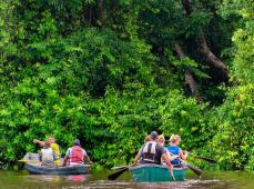 Por la mañana recorremos en pequeños botes sin techo (2 horas aprox.), los canales secundarios del Parque, donde disfrutamos de la gran biodiversidad del bosque lluvioso y donde normalmente se ven caimanes, tucanes, monos de varios tipos, osos perezosos y muchos otros. Tras finalizar, regresamos a nuestro alojamiento para el almuerzo.